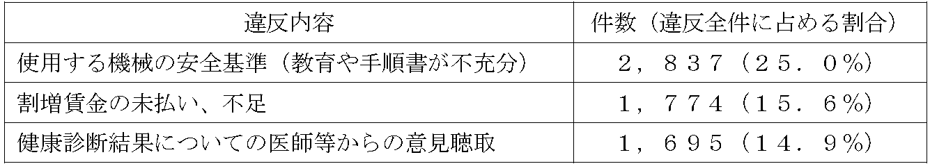技能実習生を使用する事業場11,355事業場を監督したところ、8,310事業場で労働基準法、労働安全衛生法ほか労働基準関係法令違反が認められました。