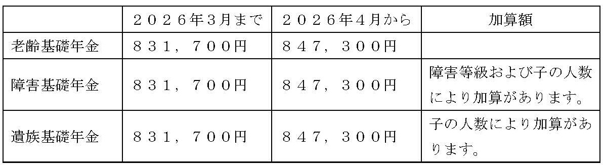 2026年4月からの年金給付額(年額)は次のとおり改定となります。